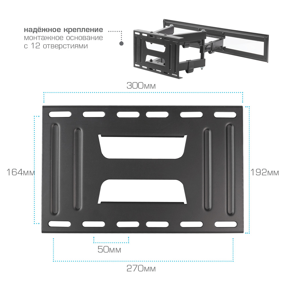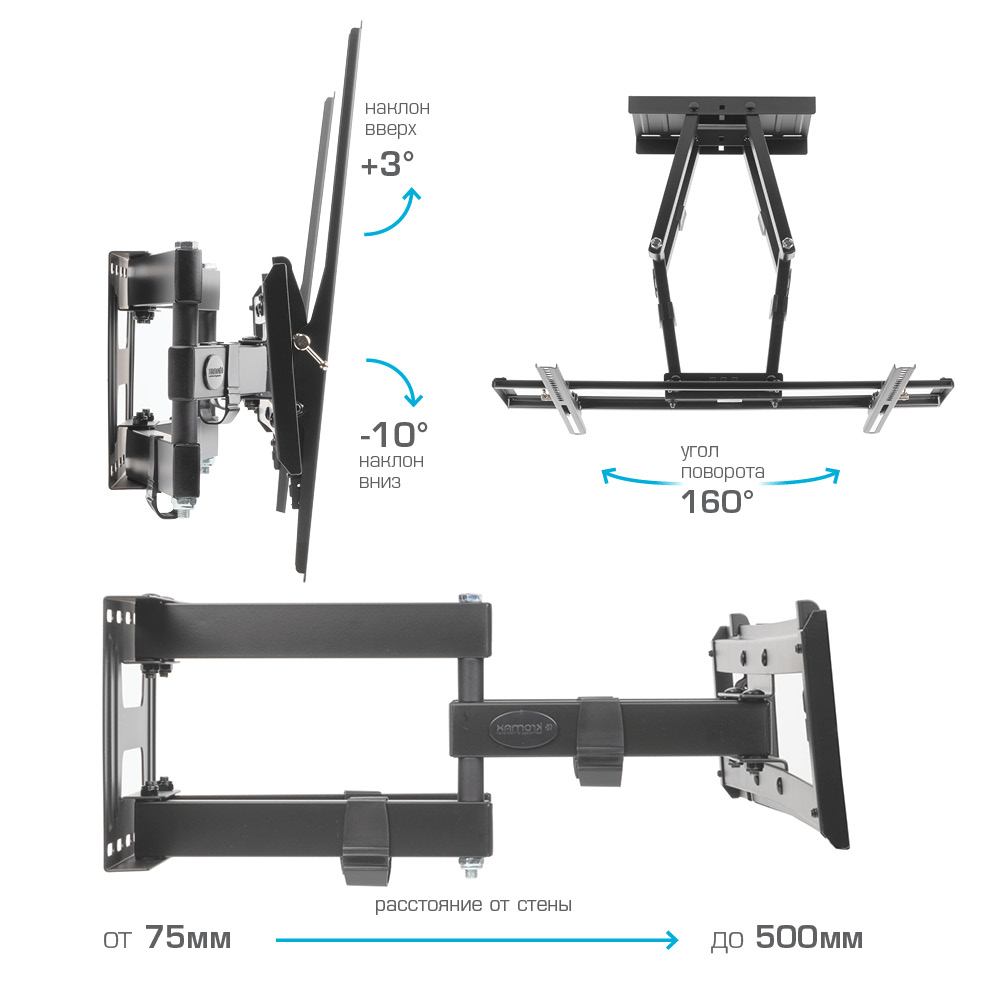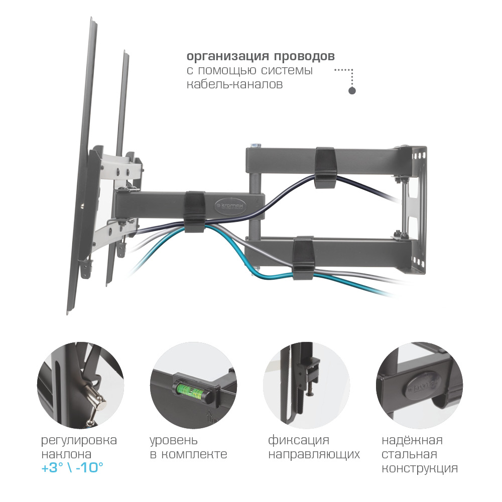 Мощная стальная конструкция, Втроенный водяной уровень, Простой и легкий монтаж, Кабель-канал, Широкое настенное основание |